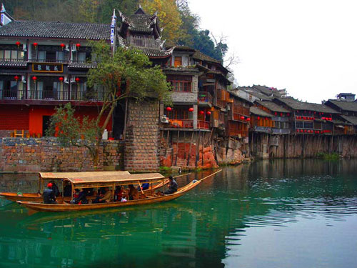 上 午: 游覽鳳凰古城九景(門票148元/人已含):【沈從文故居】、【熊希齡故居】、【楊家祠堂】、【東門城樓】、【沱江泛舟】、【萬壽宮】、【崇德堂】、【陳寶箴老宅】、【虹橋藝術樓】等景點,古城風景秀麗、歷史悠久、名勝古跡甚多。城內石板小街,古代城樓,明清古院;城外沱江蜿蜒,河水清冽,漿聲舟影,山歌互答;悠閑鳳凰古城、沙灣民俗風情一條街、苗家姜糖、土家銀飾、西蘭卡普、竹器等工藝品琳瑯滿目,鳳凰血粑鴨、酸魚等十大名菜及各種小吃讓人垂涎欲滴!