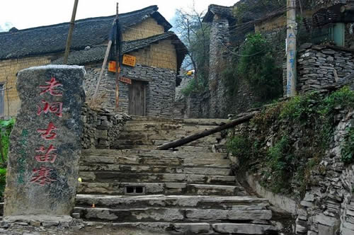 這里是一座石頭城,呈九宮八卦布局,設(shè)計精巧,而且攻防體系和排水體系都相當(dāng)完整,這里曾有著富足而輝煌的歷史。直到民國25年,烏龍山土匪1000多人攻打老洞苗寨12天12夜,燒掉老洞古建筑群2座,搶走銀光洋一萬余塊,銅元一萬多斤,銀錠300多斤,從此以后老洞苗寨沒落深山,步入貧窮而漸漸地不為人知。