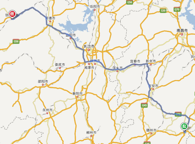 瑞金去張家界自駕車(chē)自助游線路圖全程高速):