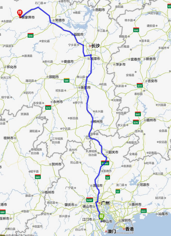 化州去張家界自駕車自助游線路圖全程高速):