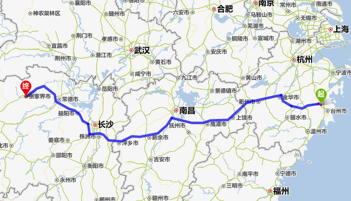 現(xiàn)在位置:張家界旅行社->交通指南->自駕車路線 -> 臨海到張家界旅游自駕車線路,臨海去張家界自己開(kāi)車要多長(zhǎng)時(shí)間,有多少公里