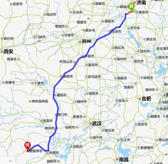 肥城去張家界自駕車(chē)自助游線路圖全程高速):
