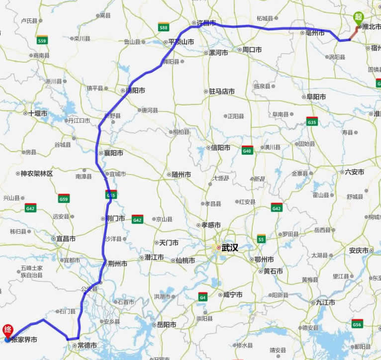 現(xiàn)在位置:張家界旅行社->交通指南->自駕車路線 -> 淮北到張家界旅游自駕車線路-淮北市去張家界自己開車要多長時(shí)間,有多少公里
