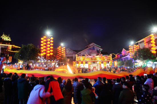 世界最長(zhǎng)香火龍“閃亮”張家界溪布老街