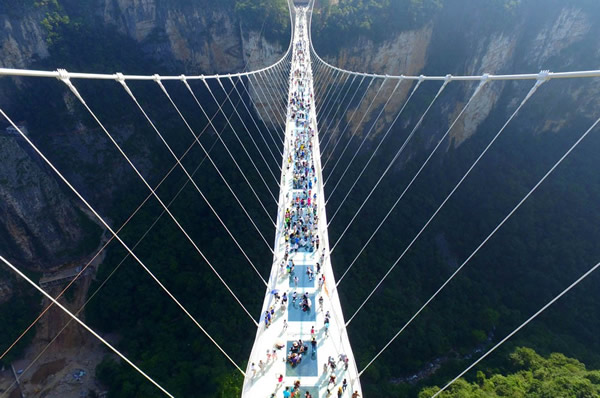 上 午:旅游車前往天門山索道下站,游覽【天門山國家森林公園】(門票已含)索道運行時間約28分鐘、沿途飽覽山城景點;觀“天下第一公路奇觀”九十九道彎通天大道、參觀“1999年世界” 特技飛行大賽中駕機(jī)穿越的天門洞;2006年特技表演基地,李娜別墅小屋、鬼谷棧道、懸于天門山頂峭壁之上,長60米,寬1.6米,最高處海拔1430米的【玻璃棧道】(鞋套費用自理)、天門山寺---湘西第一大寺等景點;(山頂小吊椅單程須另付費25元/人、玻璃棧道須另付費5元/人、天門扶梯另付費32元/人)