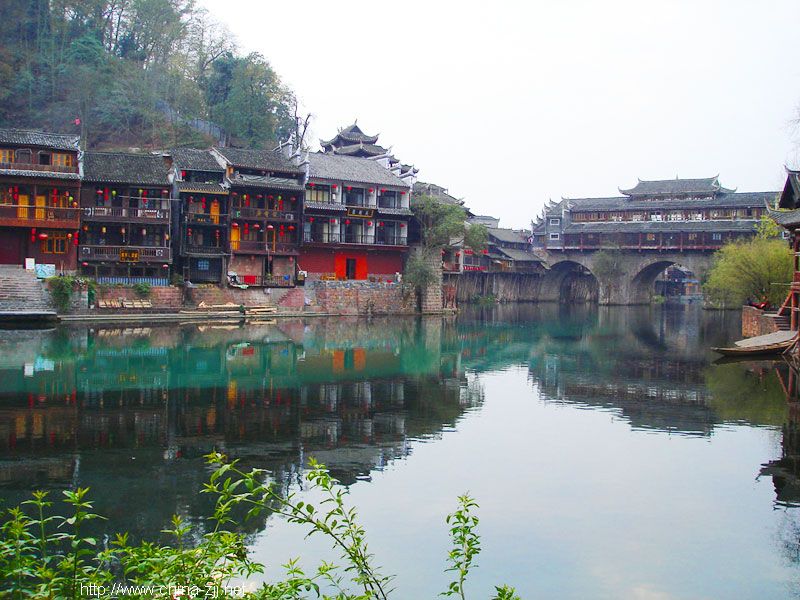 【鳳凰古城位于沱江之畔、群山環(huán)抱、關隘雄奇、碧綠的沱江依著城墻緩緩流淌,疊翠的南華山麓倒映江中,江中漁舟游船數點,山間暮鼓晨鐘兼鳴,懸崖上的吊腳樓輕煙裊裊,碼頭邊的浣紗姑笑聲朗朗,兩岸已有數百年歷史的吊腳樓更是別有一番風味;順水而下穿過虹橋一幅江南水鄉(xiāng)的畫面便展現于眼前--萬壽宮、萬名塔、奪翠樓……一種遠離塵世的感覺悠然而生;鳳凰--猶如“一幅濃墨淺彩的中國山水畫”】(游覽時間約3小時左右)